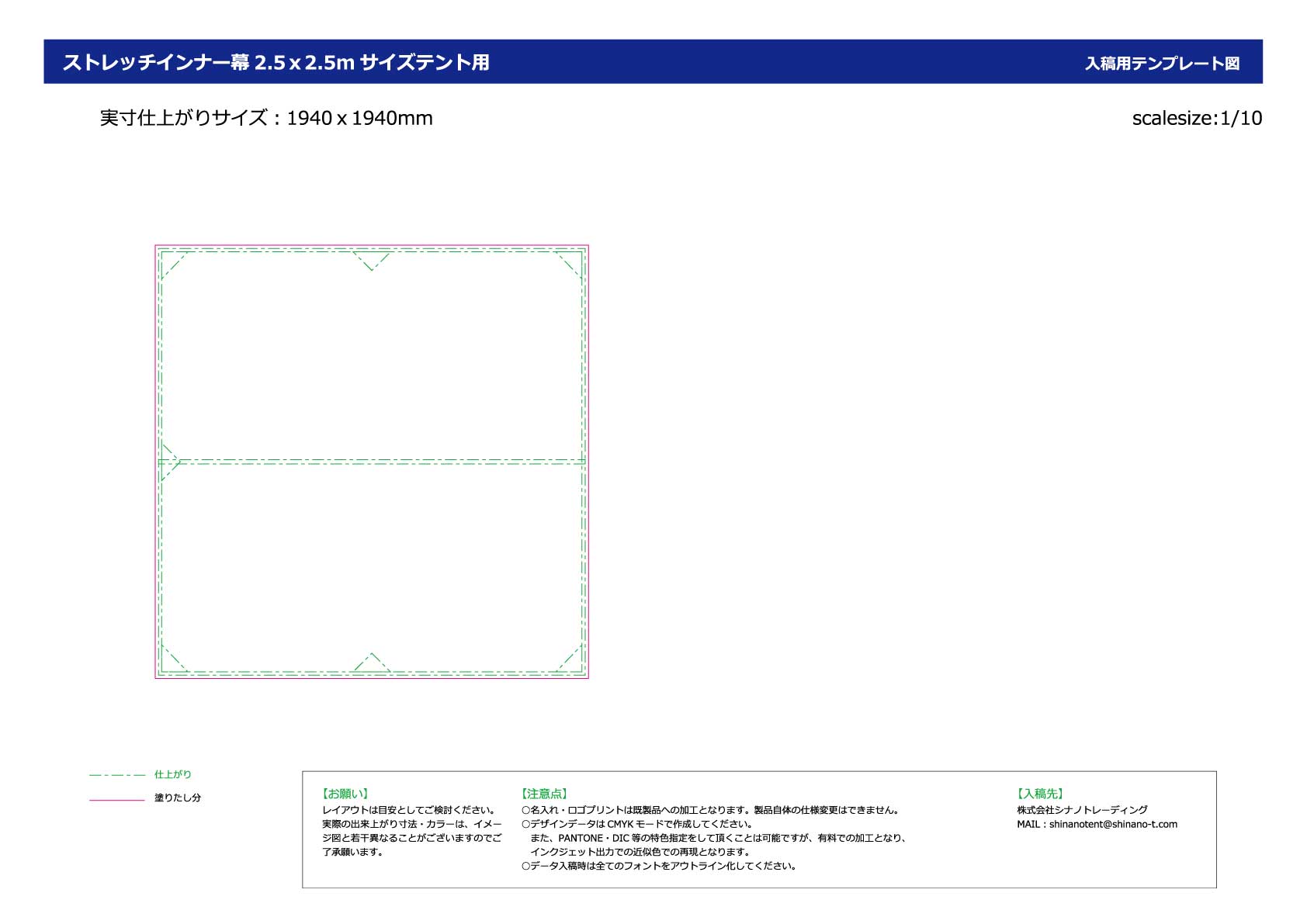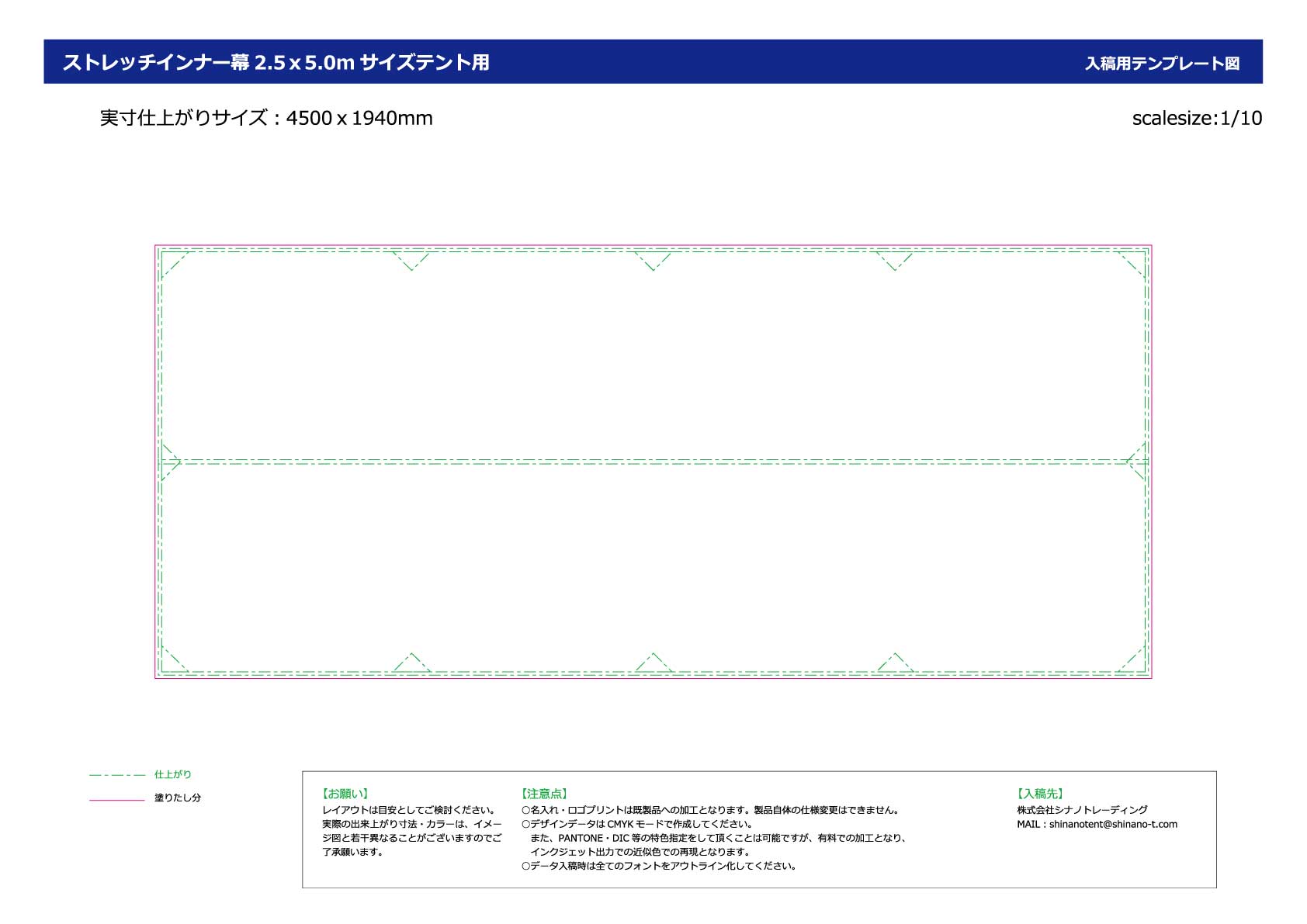 幕にデザインを施したい場合は下記から入稿用テンプレートPDFデータをダウンロードしてください。